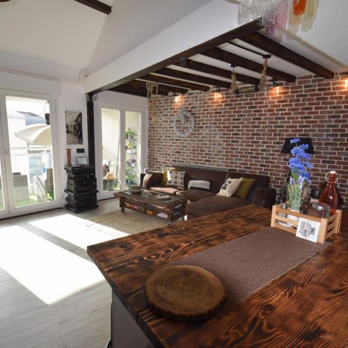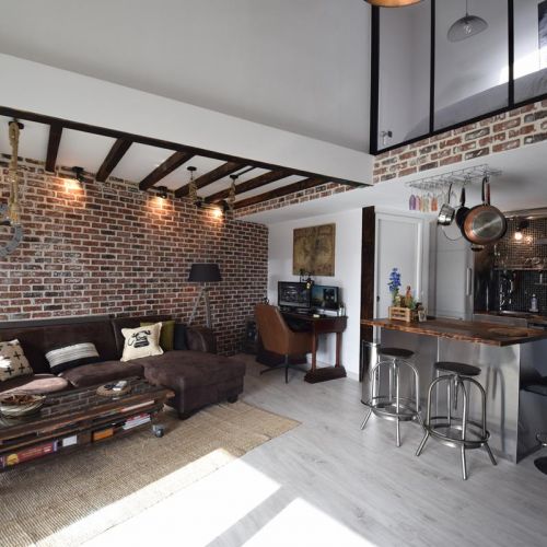 Ремонт апартаментов в индустриальном стиле на юго-востоке Франции, Ни́цца. Для дизайна была выбрана спокойная бежево-коричневая гамма – в итоге получился интерьер, в котором приятно и отдыхать, и работать. Подобранные цвета создают атмосферу спокойствия и гармонии, расслабляют и настраивают на положительный лад.